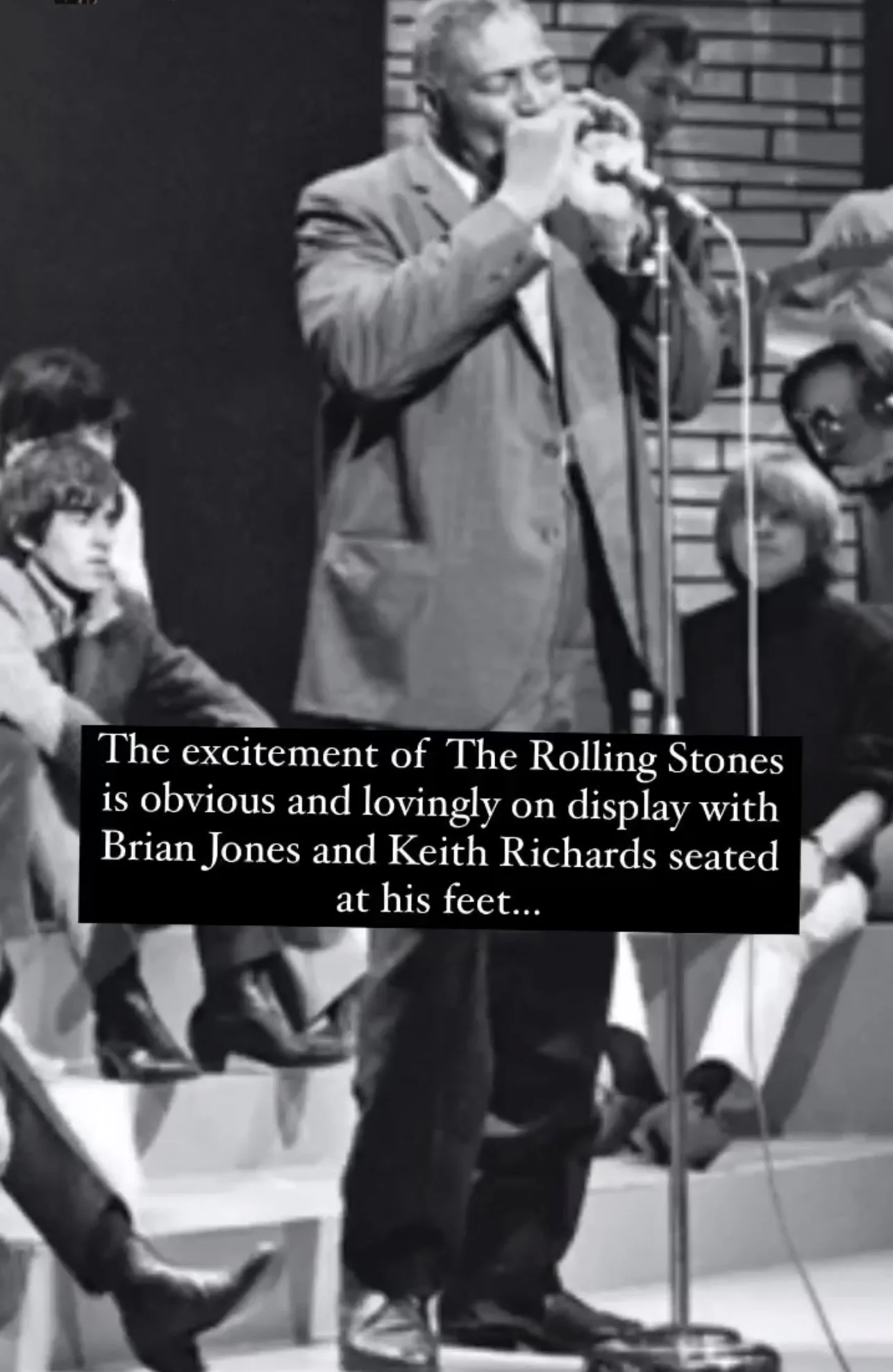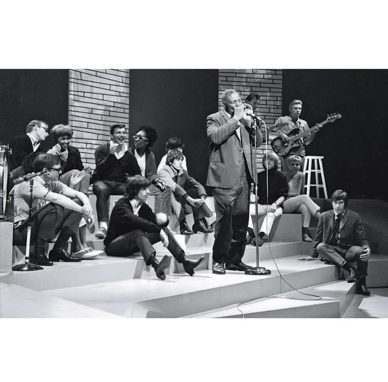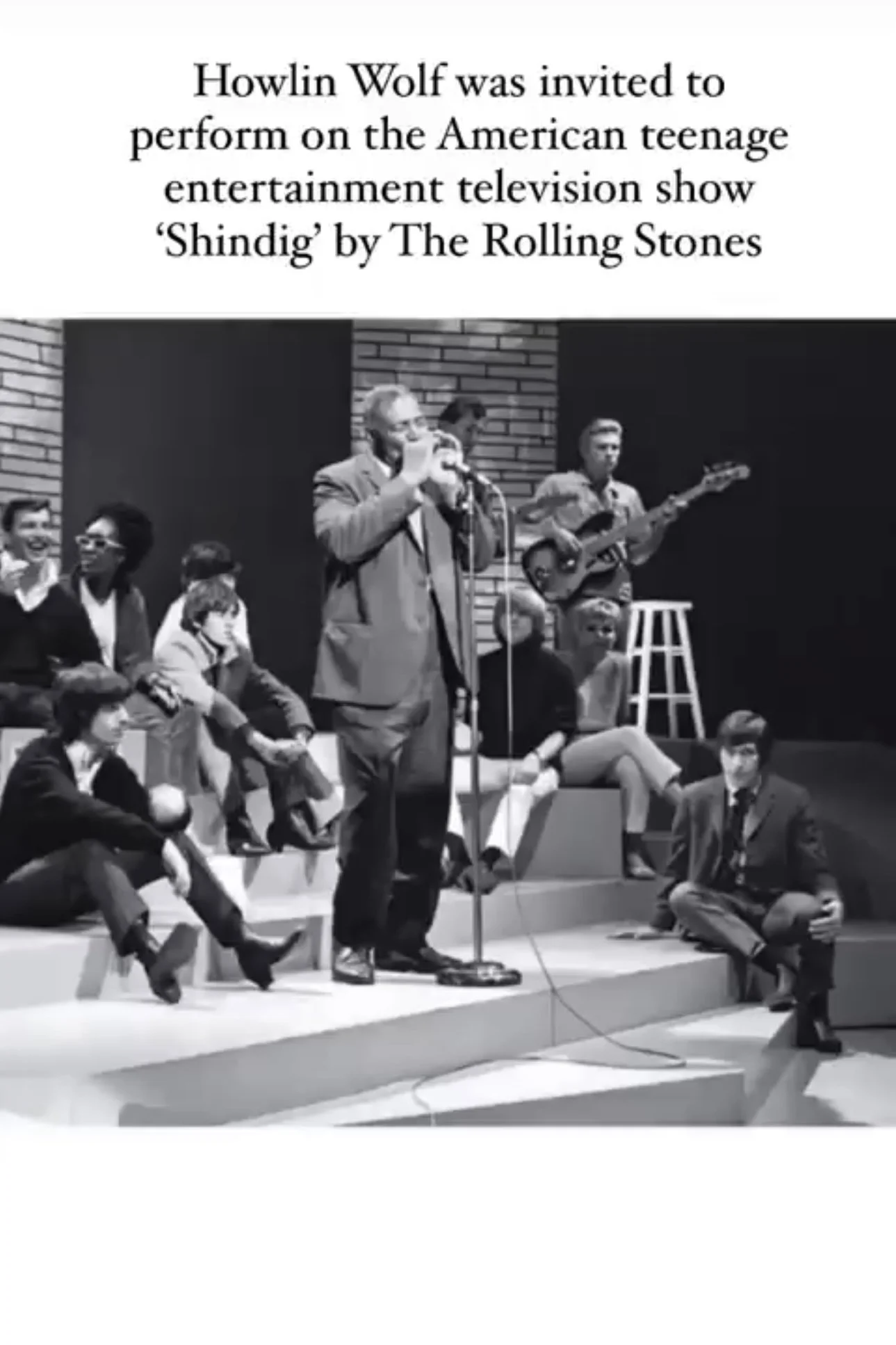 Howlin Wolf performing on American television show ‘Shindig’ on May 20, 1965 with The Rolling Stones adoringly seated at his feet.