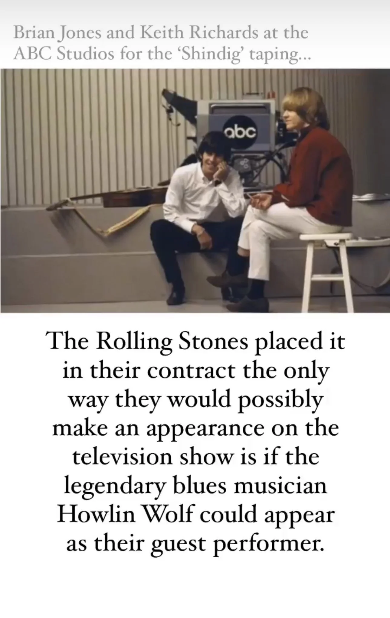 The Rolling Stones placed it in their contract the only way they would possibly make an appearance on the television show was if the legendary blues musician Howlin Wolf could appear as their guest performer.